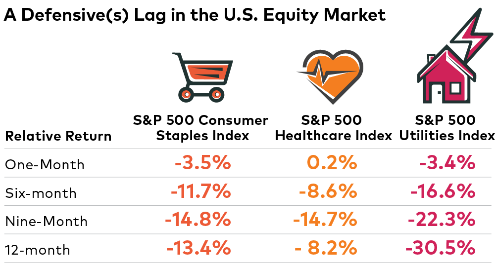 Consumer staples, healthcare and utilities sectors have underperformed this year.