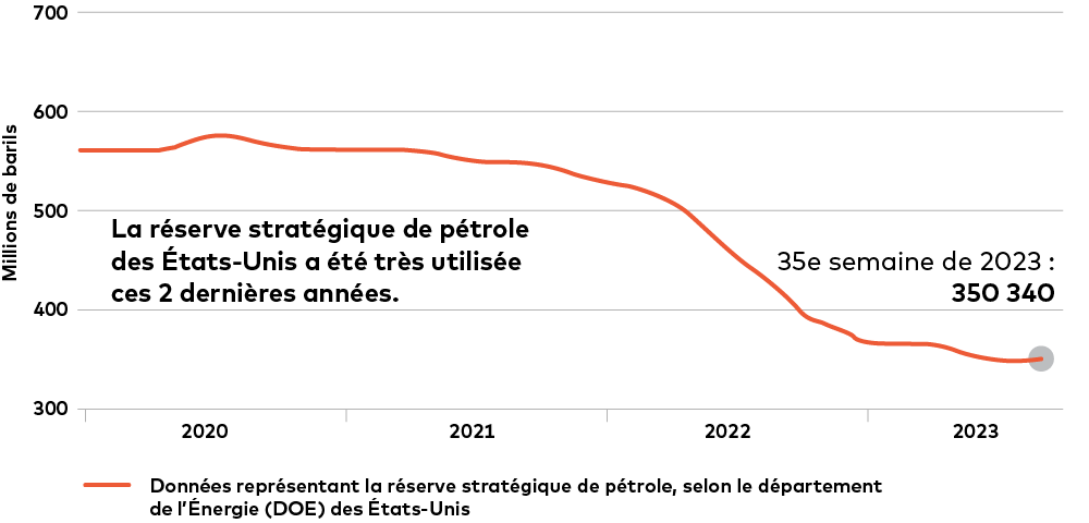 Total des stocks de la réserve stratégique de pétrole, selon le département de l’Énergie des États-Unis
