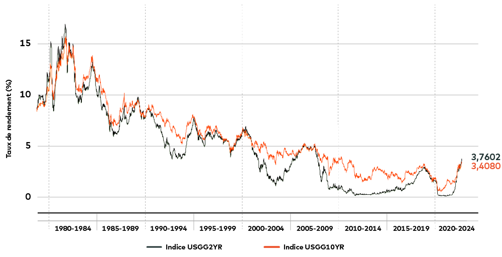 Figure 2 : Taux des obligations du Trésor à 2 ans et à 10 ans