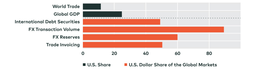 Ultimately, the U.S. dollar’s role as the world’s reserve currency seems secure and its value is unlikely to erode solely because of recent geopolitical developments in support of “de-dollarization.”