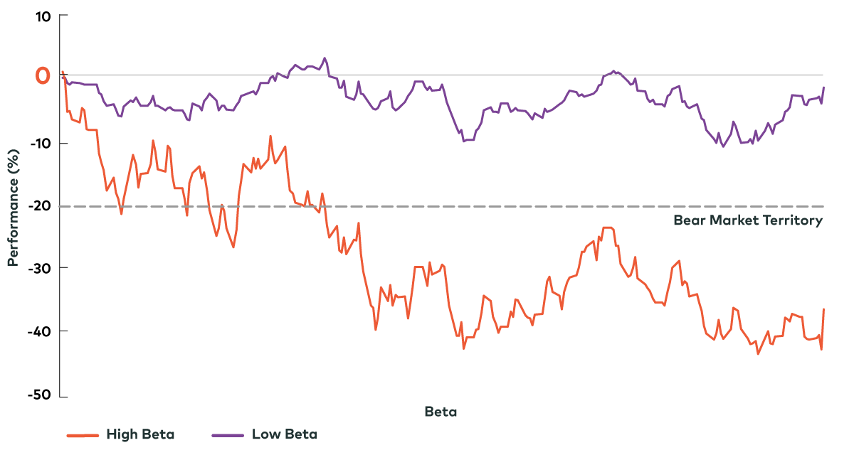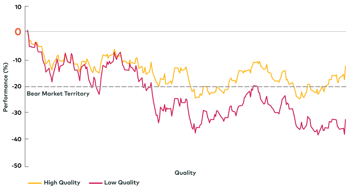 All in then, the combination of extreme oversold conditions, incrementally improving price pressures and the potential overshoot in earnings pessimism could help push equity markets higher in the near term. However, investors should remain cautious as the economic and earnings backdrop continues to evolve. In this environment, a balanced approach to both high- and low-beta stocks and a continued focus on higher quality names may help investors take advantage of potential upside in markets while also navigating the risk of greater volatility to come.